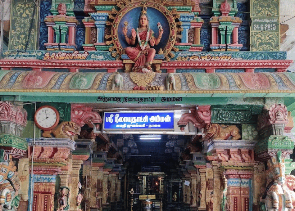 Neelayadakshi Amman Temple, located in Nagapattinam, Tamil Nadu, is a revered Hindu temple dedicated to Goddess Neelayadakshi, a form of Goddess Parvati. The temple is associated with the Kayarohanaswamy Temple, where Lord Shiva is worshipped as Kayarohanaswamy. The site is praised in the Thevaram hymns composed by the Nayanars, particularly by saints like Appar and Thirugnanasambandar, which adds to its historical and religious importance. The temple, along with the Kayarohanaswamy Temple, was built and expanded during the reign of the Chola dynasty. Later, the Nayak kings also contributed to the temple’s development. The architecture and inscriptions found in the temple complex reflect the influence of these dynasties. The temple features several mandapams where devotees gather to offer prayers and participate in rituals. These halls are adorned with carvings that depict scenes from Hindu mythology, particularly those related to Shiva and Parvati.