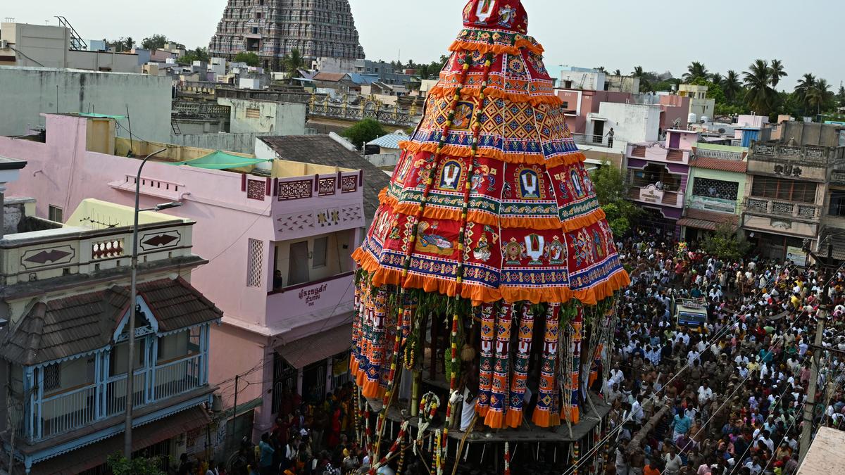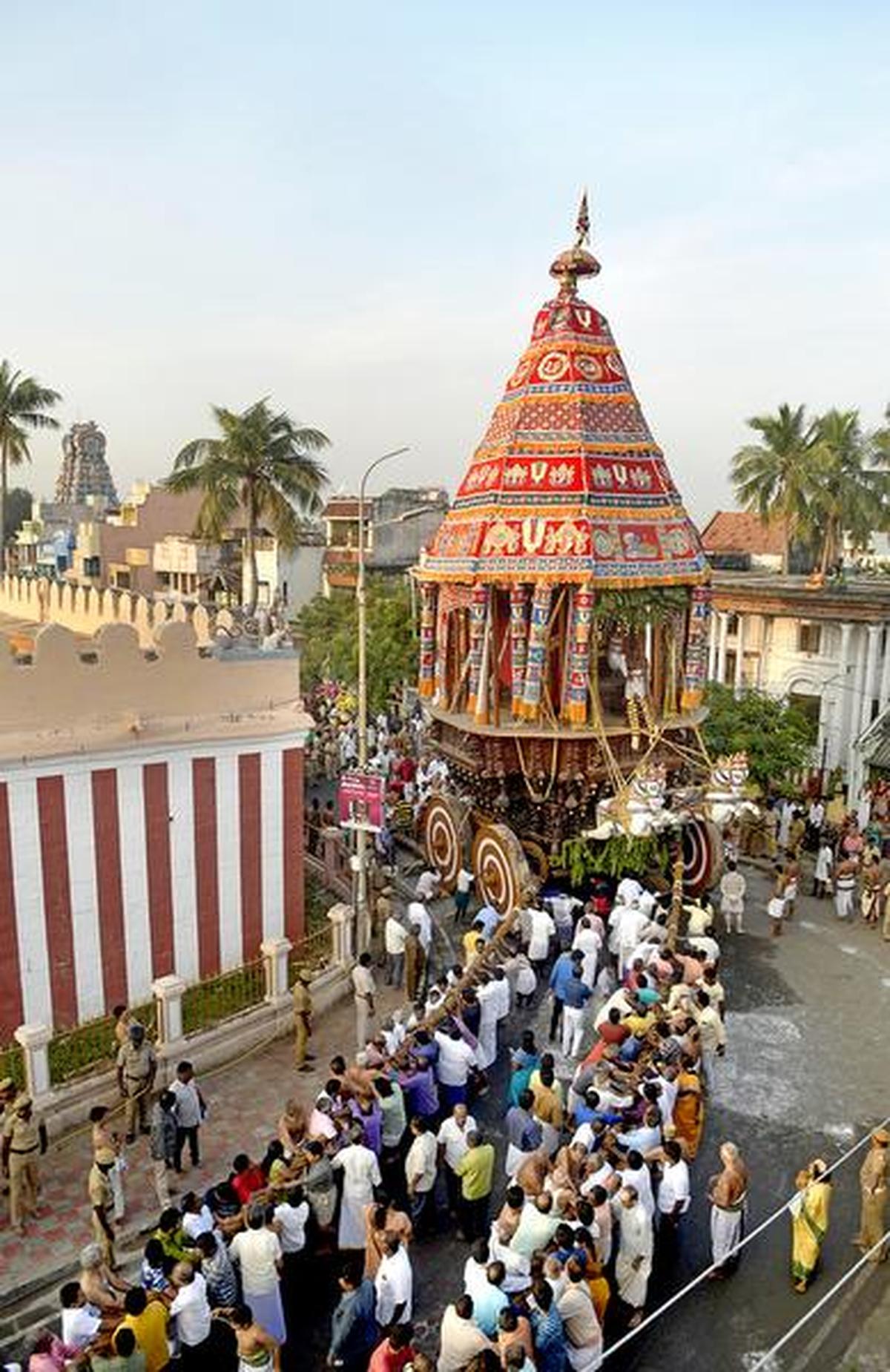 • ஆயிரக்கணக்கான பக்தர்கள் சேர்ந்து தேர் இழுப்பார்கள்.